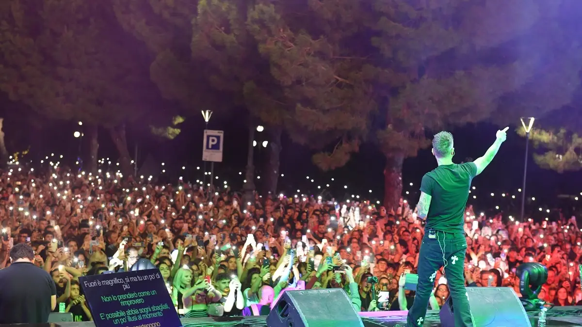 Decine di migliaia di fans arrivati da ogni dove per assistere allo spettacolo del rapper milanese preceduto da uno straordinario e promettente “Lio”, giovane cantautore reggino reduce da una straordinaria performance al Festival di Castrocaro ed acclamato dalla sua città, e da Fiat 131 che ha conquistato il pubblico con i suoi testi raffinati ed un tributo al grande Lucio Dalla.