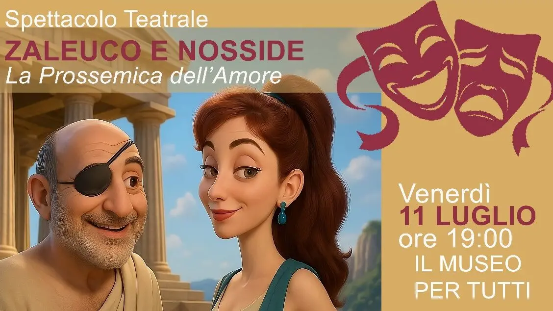 Andrà in scena venerdì 11 luglio alle 19.00 lo spettacolo teatrale “Zaleuco e Nosside – La prossemica dell’amore” al Museo Archeologico Metauros di Gioia Tauro. Uno spettacolo che rientra nelle attività estive del Museo, che hanno visto finora la partecipazione di tantissime famiglie e gruppi di visitatori.