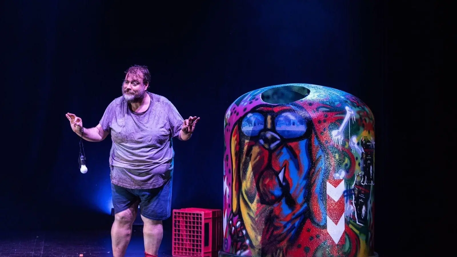«È un viaggio nella vita di un uomo in continua trasformazione. Dal giovane attore entusiasta che porta in scena un testo in italiano volgare del ‘200 al grande attore affermato che si trova di fronte ad una crisi matrimoniale che ne scatena una interiore, per finire, ormai saggio, nell’immondizia a filosofeggiare», afferma Fresi.