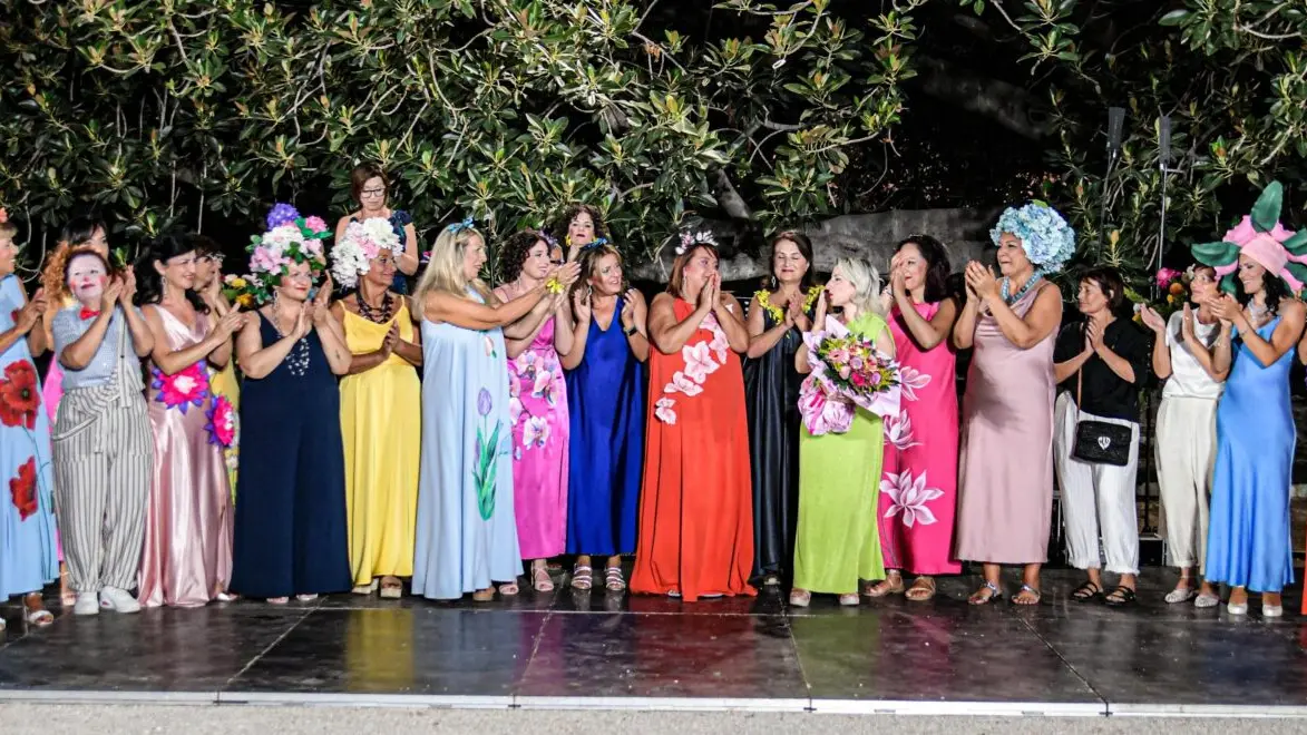 Filo conduttore i meravigliosi fiori dipinti su tessuto dalle artiste Francesca Fiorenza e Carmen Arrigo e quelli applicati, realizzati da Maria Accurso. Mentre i copricapi sono stati realizzati da Balù Creazioni artigianali. Per l’edizione di quest’anno hanno indossato le creazioni orafe delle sorelle Milena e Sonia Trapasso: pezzi unici in oro, argento e pietre naturali, interamente realizzati a mano con cura meticolosa dei dettagli.