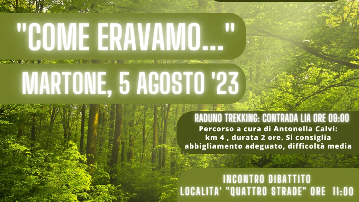La giornata inizierà alle 09:00 con il raduno presso Contrada Lia, da dove, guidati dalla volontaria Antonella Calvi, partirà un’escursione di circa quattro chilometri per scoprire la zona di Crini, ascoltando i racconti e le esperienze dei martonesi. Due ore di passeggiata con difficoltà media, tra la natura, le