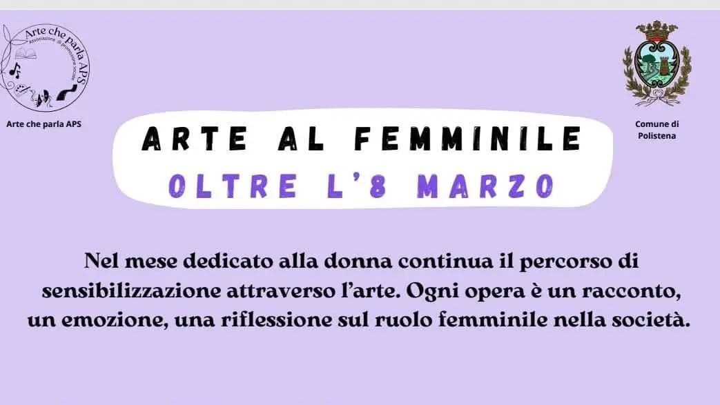 Il 22 marzo 2025, a partire dalle ore 15.00, presso il Salone delle feste del Comune di Polistena (R.C.), Via G. Lombardi, si terrà l’evento “Arte al femminile – Oltre l’8 marzo” organizzato dall’Associazione Arte che parla APS, con il patrocinio del Comune di Polistena.