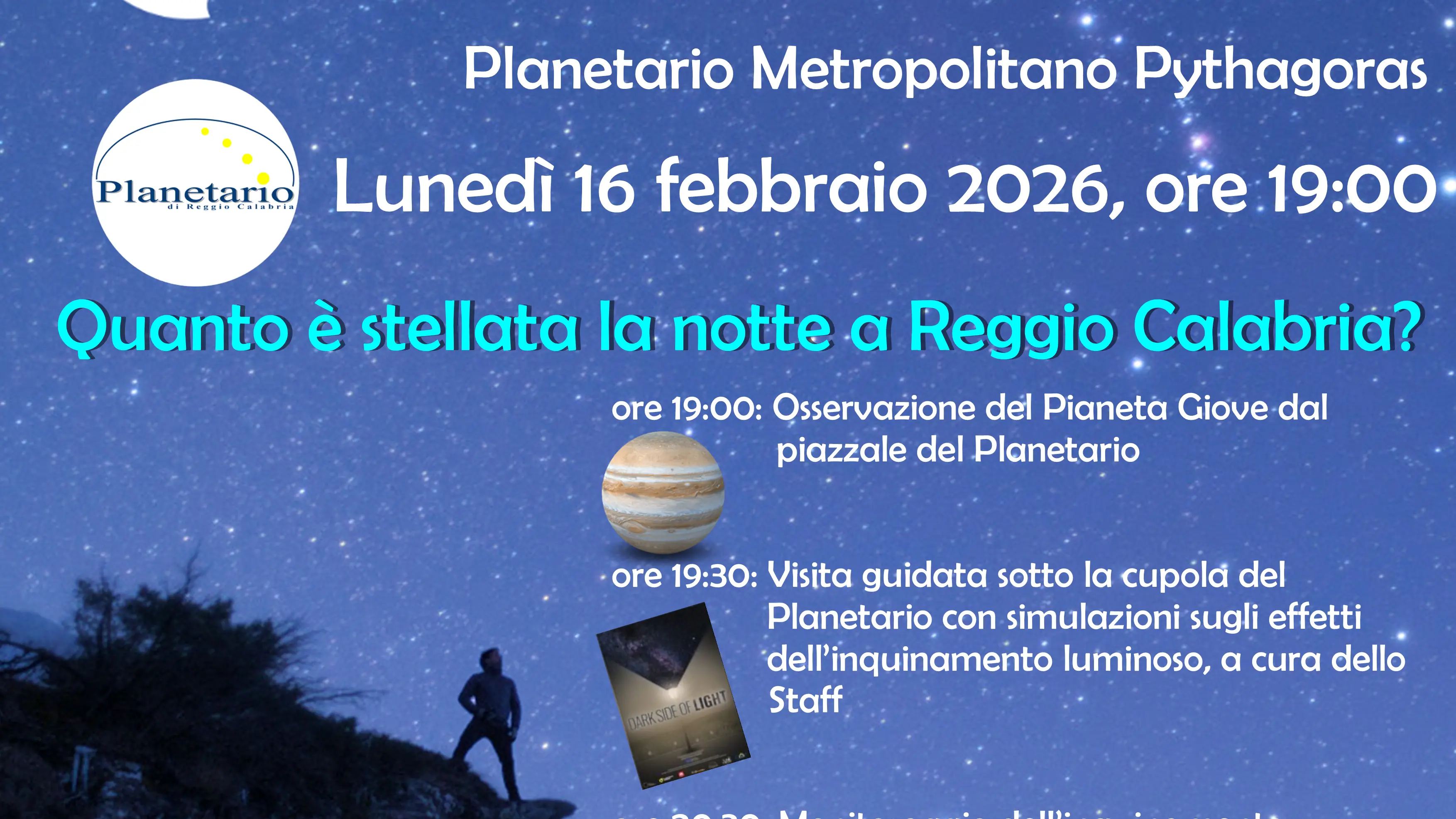 Il Planetario Metropolitano Pythagoras, come ogni anno, organizza un evento legato a questa Giornata, allargando il focus dell’evento includendo anche il tema dell’inquinamento luminoso – non solo come risultato dello spreco di energia, ma anche quale danno per le osservazioni del cielo notturno, sia a occhio nudo che al telescopio.