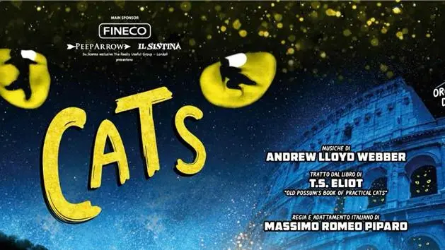 Per la prima volta al mondo, il “Cats” di Massimo Romeo Piparo ha ottenuto dall’autore l’autorizzazione ad essere ambientato a Roma, in una ipotetica e futuristica “discarica” di opere d’arte e di reperti archeologici, con il Colosseo sullo sfondo. Anche nella versione italiana dello spettacolo – che a Broadway ha fatto registrare fino al 2006 il record mondiale di repliche consecutive, restando ancora oggi tra i primi quattro Musical più rappresentati della Storia –scenografie spettacolari e coreografie mozzafiato: sul palco il pubblico vedrà muoversi come veri felini gli artisti, tutti sottoposti a speciali e lunghissime sedute di trucco per una metamorfosi sorprendentemente realistica in un trionfo di miagolii, nasi neri, baffi, lunghe code e zampe felpate.