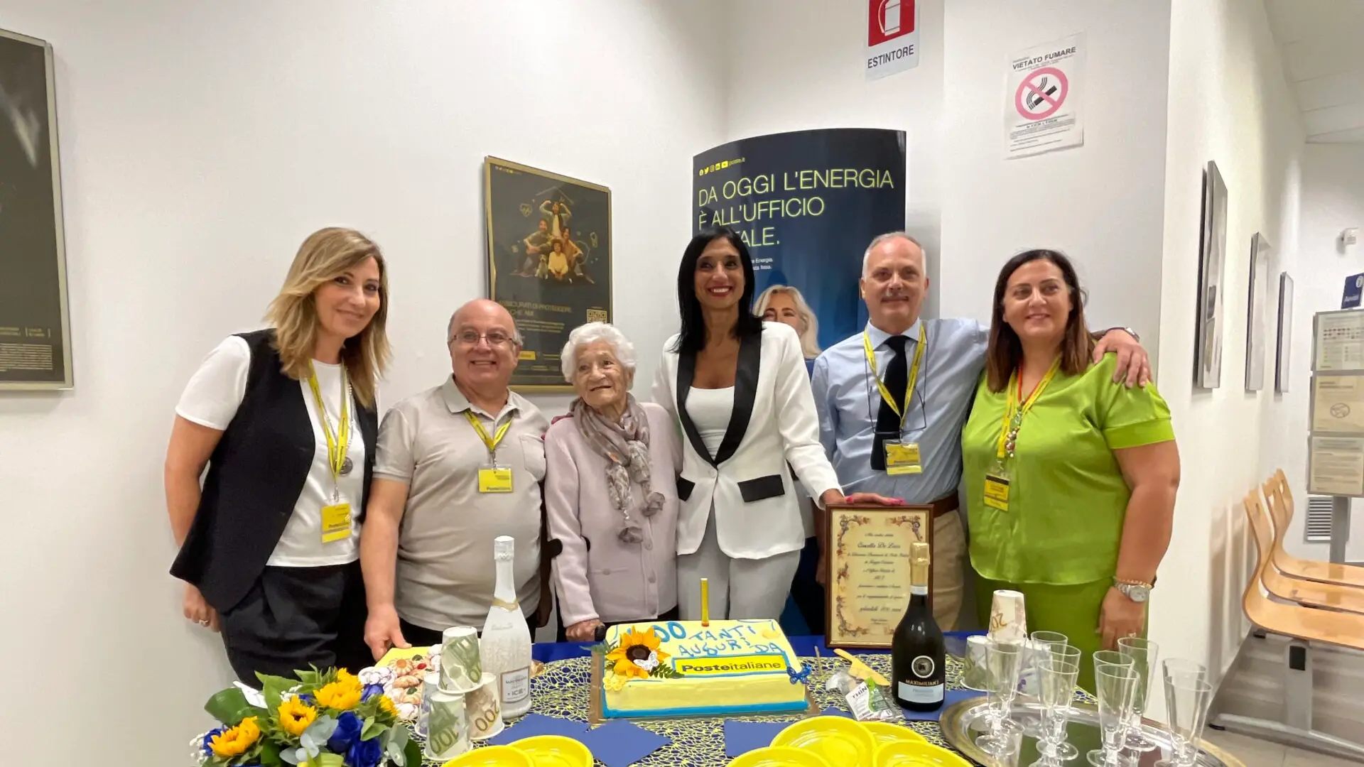 Al termine della piccola ma intensa “cerimonia”, alla quale hanno partecipato anche alcuni congiunti della festeggiata, la signora De Luca ha voluto ringraziare il Direttore provinciale, il direttore dell’ufficio postale e tutto il personale di Poste Italiane con un sorriso e deliziandoli con una bellissima canzone del suo ricco repertorio musicale.