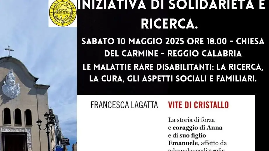 Un appuntamento di grande rilievo sociale e sanitario è in programma per sabato 10 maggio, alle ore 18:00, presso la Chiesa del Carmine di Reggio Calabria. L’Associazione San Camillo Onlus, l’Associazione Templare Jaques de Molai, AziendeItalia per il Sociale e l’Accademia Templare promuovono un evento di sensibilizzazione sulle malattie rare disabilitanti, con un focus particolare su ricerca, cura e aspetti sociali e familiari legati a queste patologie.