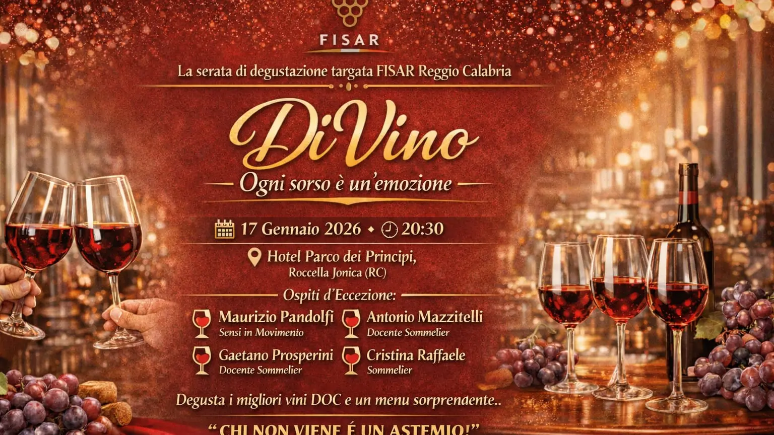 La Delegazione FISAR di Reggio Calabria propone, sabato 17 gennaio alle ore 20:30, presso l’Hotel Parco dei Principi di Roccella Jonica, “DiVino”, una serata speciale con una cena degustazione all’insegna delle eccellenze enologiche della provincia di Reggio Calabria.