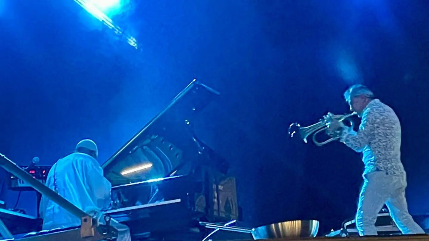 I due musicisti hanno incantato gli spettatori grazie al loro speciale affiatamento che li ha portati a collaborare per ben tre album: Alma (2012), Eros (2016) e FOOD (2023). In particolare, l’ultimo album è stato il leitmotiv della serata palmese, durante la quale il duo Fresu – Sosa ha accompagnato il pubblico nel mondo culinario attraverso voci e rumori, combinate con avvolgenti atmosfere jazz.