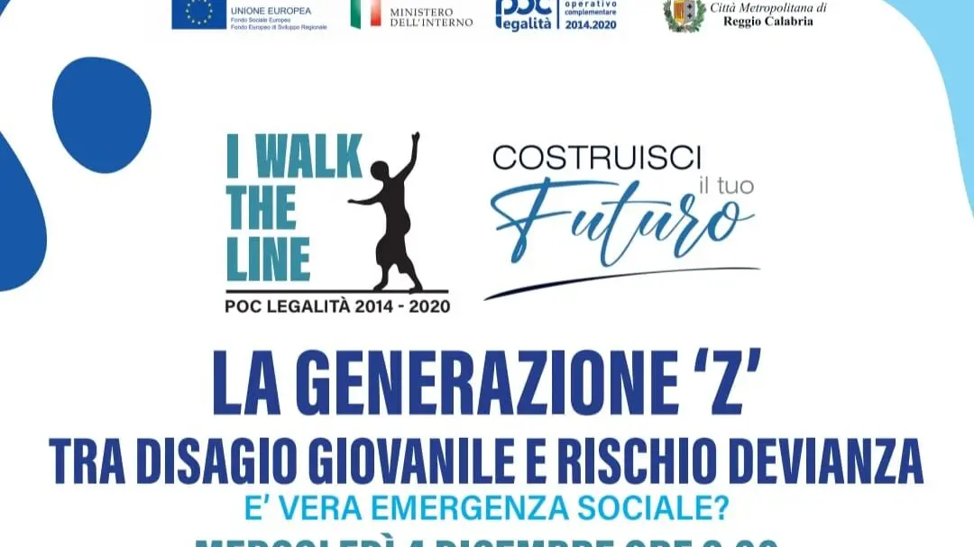 Si terrà mercoledì 4 dicembre, a partire dalle ore 9:00 presso il teatro Odeon, il convegno “La Generazione Z – Tra disagio giovanile e rischio devianza. È vera emergenza sociale?”. L’iniziativa si inserisce nel più vasto programma “I Walk the Line”, il progetto realizzato dalla Città Metropolitana di Reggio Calabria e finanziato dal Ministero dell’Interno attraverso i “Poc legalità 2014-2020”.