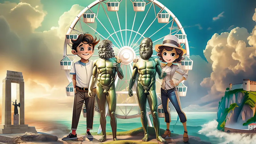 Abbiamo scelto come soggetti alcuni dei luoghi più iconici di Reggio Calabria: i Bronzi di Riace, simboli indiscussi della città, la via Marina definita “il chilometro più bello d’Italia,” l’arena con la sua vista mozzafiato sullo Stretto di Messina, il Duomo cuore pulsante del centro storico, il Castello Aragonese testimone della storia reggina, l’intramontabile Teatro Cilea, la fascinosa Villa Zerbi e località incantevoli come Scilla e Pentidattilo. Anche le moderne sculture di Rabarama e le colonne di Tresoldi sono fonti d’ispirazione per le illustrazioni, che diventano un ponte tra passato e presente.