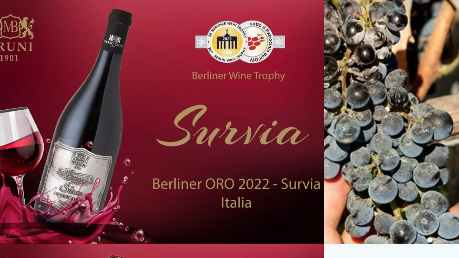Sugli scudi, il Survia e il San Giù, protagonisti indiscussi che hanno fatto guadagnare ben due medaglie d’oro al più importante concorso enologico tedesco. Due premi che qualificano positivamente non solo il buon vino ed un territorio, ma una passione ed una cultura del fare, che nella “Cantine Bruni” si tramanda da generazioni fin dall’inizio del secolo scorso, con attestati quali la Medaglia d’oro conferita nel 1934 nella Mostra nazionale dell’Agricoltura di Firenze.
