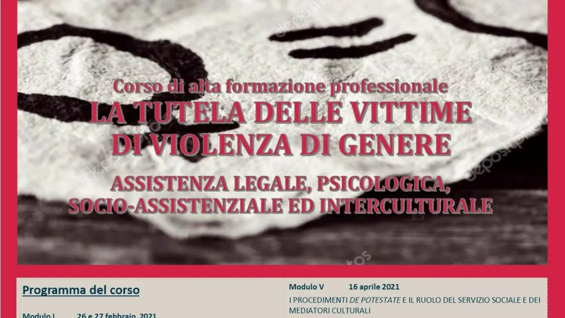 – Modulo III il 26 e 27 marzo, “Il ruolo delle forze dell’ordine, dei centri antiviolenza e degli operatori sanitari nelle tutela delle vittime di violenza di genere ed il fenomeno delle denunce strumentali”; docenti: Comandante C. Meo, Dott.ssa M. Mineccia, Avv. M. c. Tringali, Prof.ssa C. Napolitano