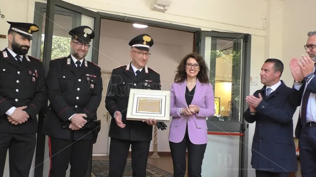 La viceministra del Lavoro e delle Politiche sociali Maria Teresa Bellucci ha poi consegnato, presso alla stazione dei Carabinieri di Gallina una targa di riconoscimento per la straordinaria attività di soccorso ed assistenza alla popolazione locale in occasione dell’improvviso e diffuso incendio che ha invaso il borgo collinare di Armo il 25 Luglio del 2023. Presente con altri rappresentanti dell’Arma, il Luogotenente Antonio Raffa della stazione di Gallina. Con il consigliere comunale reggino in quota Fratelli d’Italia Demetrio Marino, ha ricordato quel delicatissimo frangente.