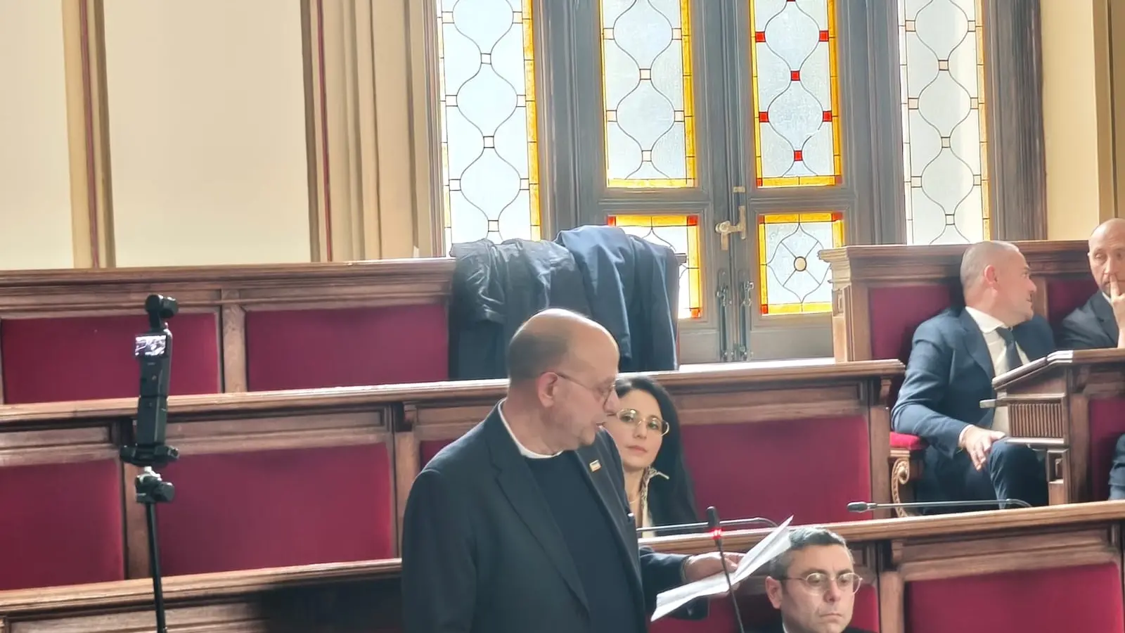 La seduta odierna si è aperta con il passaggio formale di Rulli al gruppo FdI. Minicuci si congeda chiedendo lumi sulla vicenda dei brogli. Battaglia si rivolge ai giovani studenti presenti a Palazzo San Giorgio: «Vi dovete sentire partecipi del vostro destino»