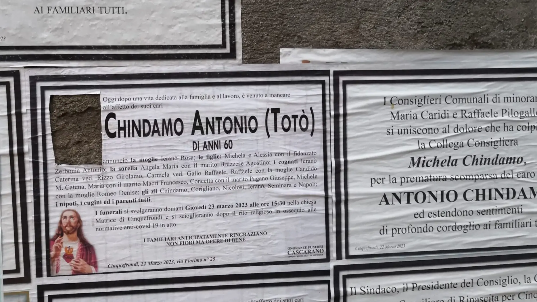«Ho sporto denuncia alla stazione dei Carabinieri di Cinquefrondi relativamente allo sfregio del manifesto di morte di mio padre affisso su una delle arterie principali del paese». Così in una nota il capogruppo del Partito Democratico nel consiglio comunale di Cinquefrondi Michela Chindamo.