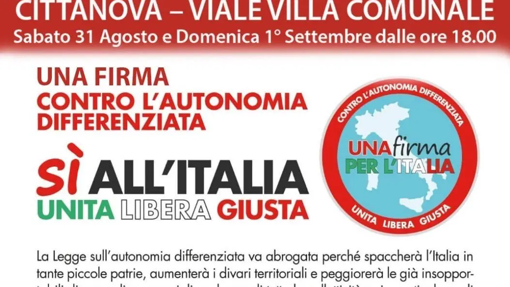 Riceviamo e pubblichiamo la nota del comitato Referendum abrogazione legge Autonomia Differenziata e dal Circolo Pd di Cittanova.