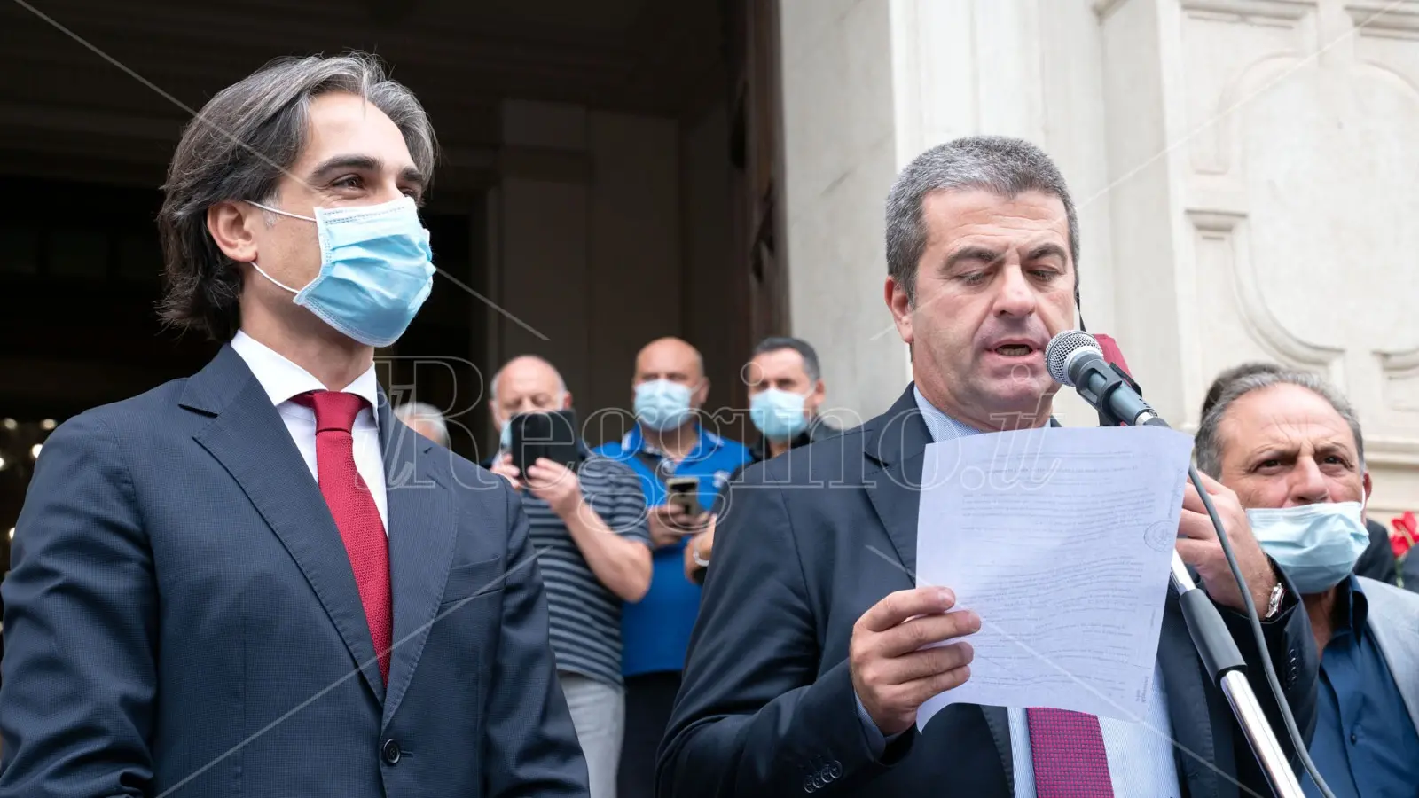 Un abbraccio e una stretta di mano con il suo avversario. Si è conclusa così la cerimonia di proclamazione a sindaco di Giuseppe Falcomatà stamattina in piazza Italia. A margine del protocollo è spuntato a sorpresa il candidato del centrodestra Antonino Minicuci, il quale si è congratulato per il successo al ballottaggio. «Resto a Reggio Calabria per dare una mano – ha detto Minicuci – dopo aver formulato gli auguri di in bocca al lupo al suo competitor.