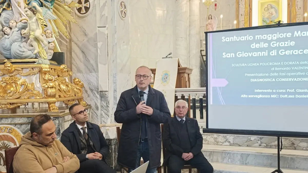 Il sindaco metropolitano facente funzioni, Carmelo Versace, è intervenuto alla presentazione del progetto di conservazione e restauro della scultura lignea della Madonna Santissima delle Grazie, custodita all’interno dell’omonimo santuario maggiore di San Giovanni di Gerace.