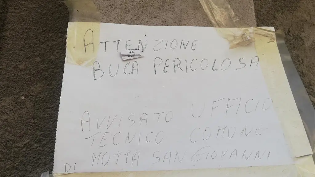 Alcuni abitanti hanno fatto presente all’ANCADIC e al Comitato di cittadini “Torrente Oliveto” nella persona del Referente unico Vincenzo Crea, di avere più volte rappresentato all’Amministrazione comunale anche attraverso il vice sindaco il pericolo che questa criticità minaccia la circolazione veicolare e l’integrità fisica delle persone, e per evitare il transito della circolazione veicolare e ciclo pedonale sul tatto degradato davanti alla buca viene parcheggiata in direzione di marcia nord/sud un’autovettura e sulla parete dell’abitazione è stato affisso un cartello indicante il pericolo e la segnalazione effettuata all’Ufficio Tecnico comunale.