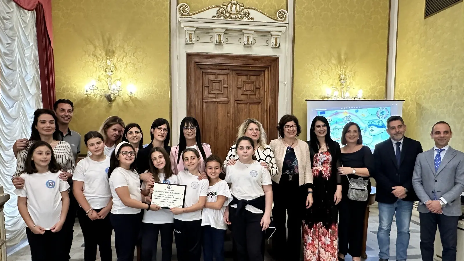 Gli allievi, accompagnati dagli insegnanti Maria Labate, Fortunella Tramontana e Rocco Malara, sono stati invitati a Palazzo San Giorgio per ricevere un riconoscimento per il brillante risultato conseguito. A loro, alla presenza della dirigente scolastica Simona Sapone, è stata consegnata una targa da parte del Presidente del Consiglio, Vincenzo Marra, del Vice sindaco, Paolo Brunetti, e dell’assessore Anna Briante.