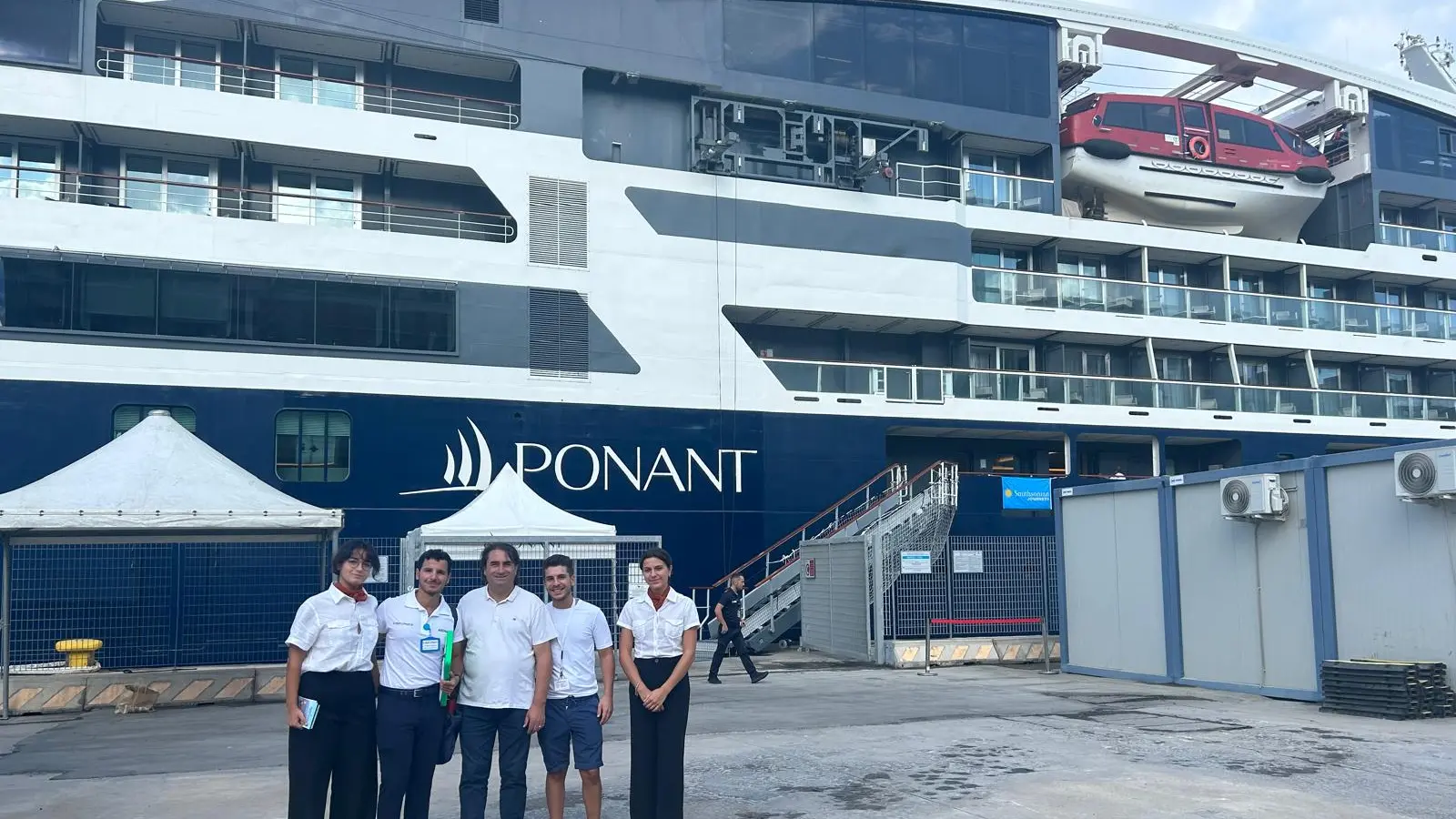 Ancora una nave da crociera al porto di Reggio Calabria. Da ieri e per l’intera giornata di oggi la nave Bouganville della compagnia Ponant, piccola crociera di lusso, con a bordo circa 300 persone, è attraccata al porto della città dello Stretto. A fare gli onori di casa il Consigliere delegato al Turismo Giovanni Latella che ha salutato l’equipaggio ed i passeggeri della nave da crociera, organizzando lo spostamento in città dei turisti in arrivo.