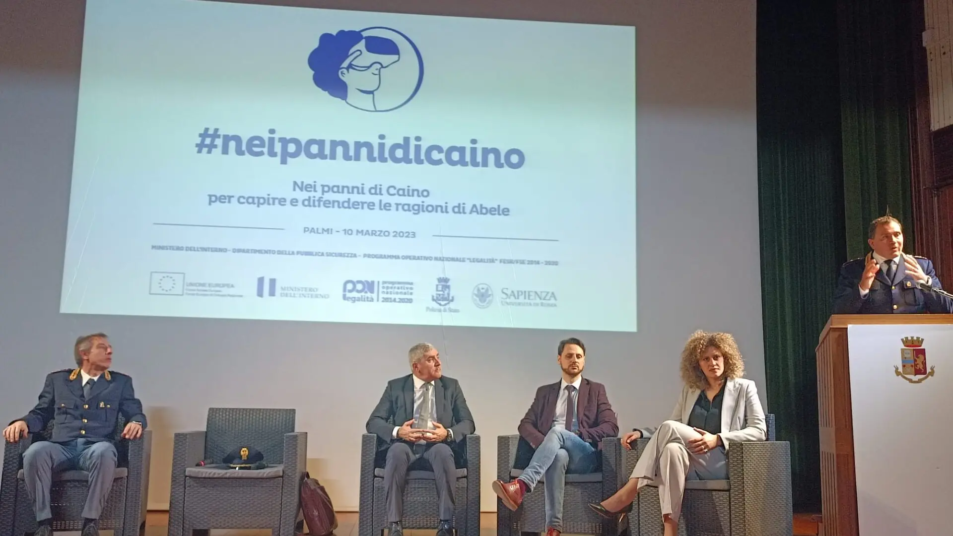 L’assessora alla Polizia locale ed alla Sicurezza, Giuggi Palmenta, ha preso parte alla fase conclusiva del progetto “Nei panni di Caino per capire e difendere le ragioni di Abele”, un’iniziativa nata dalla collaborazione tra la Polizia di Stato e Sapienza Università di Roma – Dipartimento di Psicologia e che ha coinvolto anche alcune scuole della Città Metropolitana di Reggio Calabria. A Palmi, nella Casa della Cultura, l’evento finale in cui sono stati presentati i risultati del programma destinato ai giovani fra i 14 ed i 17 ed a cui hanno partecipato il sindaco metropolitano facente funzioni, Carmelo Versace, il prefetto, Massimo Mariani, e le massime autorità civili e militari del territorio.