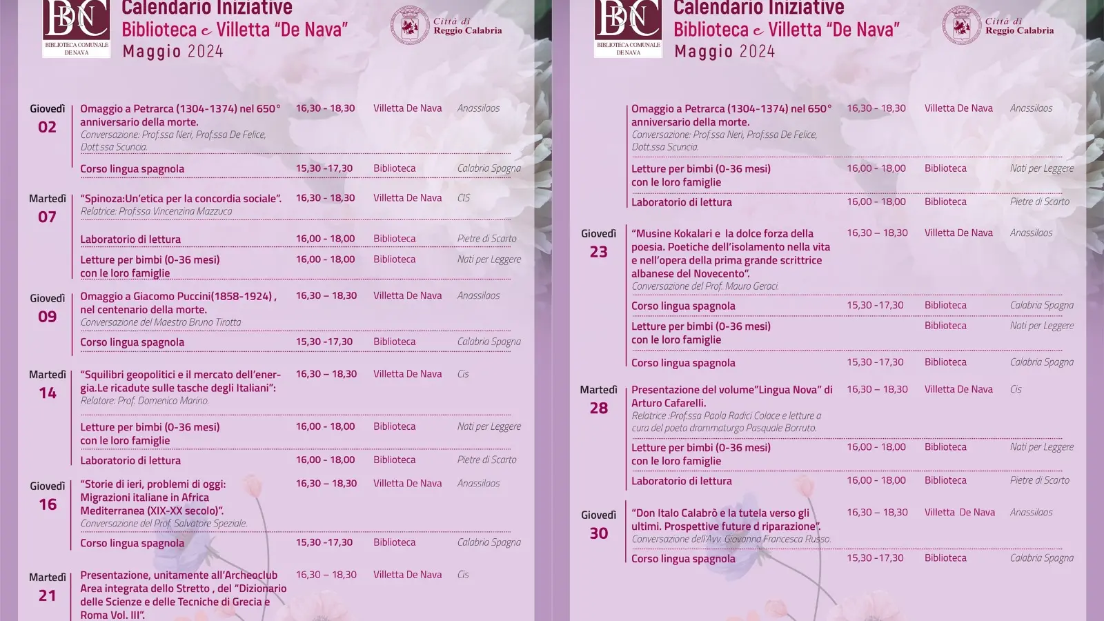 Prenderanno il via oggi gli appuntamenti alla Biblioteca comunale “P. De Nava” per il mese di maggio. Un calendario, anche questa volta, pieno di eventi diversi e per ogni età.