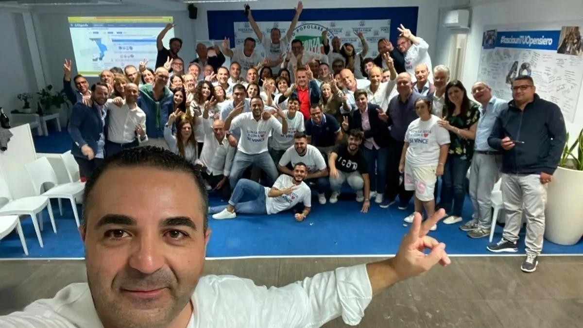 Il neo parlamentare ha festeggiato con i suoi sostenitori nella sede del coordinamento provinciale di Forza Italia