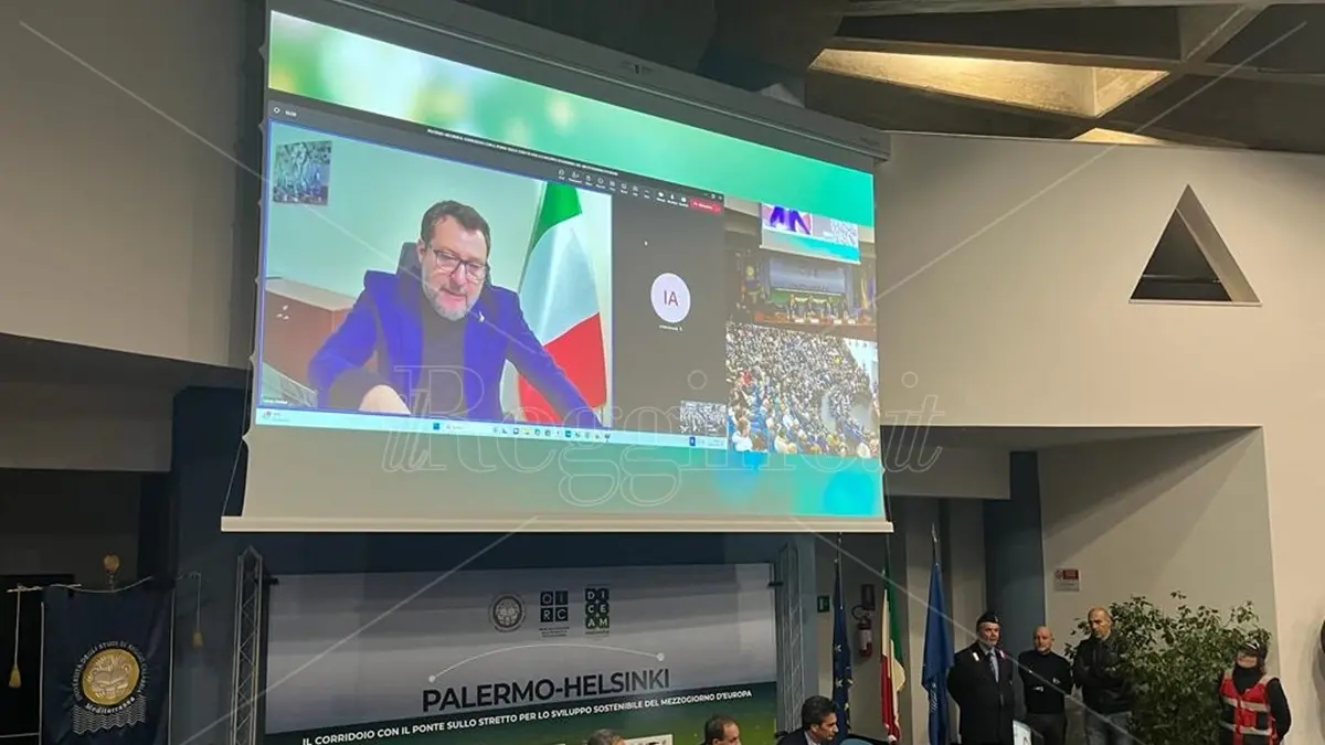 Così il ministro Infrastrutture e dei Trasporti Matteo Salvini, intervenuto da remoto in apertura del confronto dal titolo “Palermo/Helsinki: il corridoio con il Ponte sullo Stretto per lo sviluppo sostenibile del Mezzogiorno d’Europa” presso la gremita aula Magna Italo Falcomatà del plesso di Ingegneria dell’università Mediterranea.