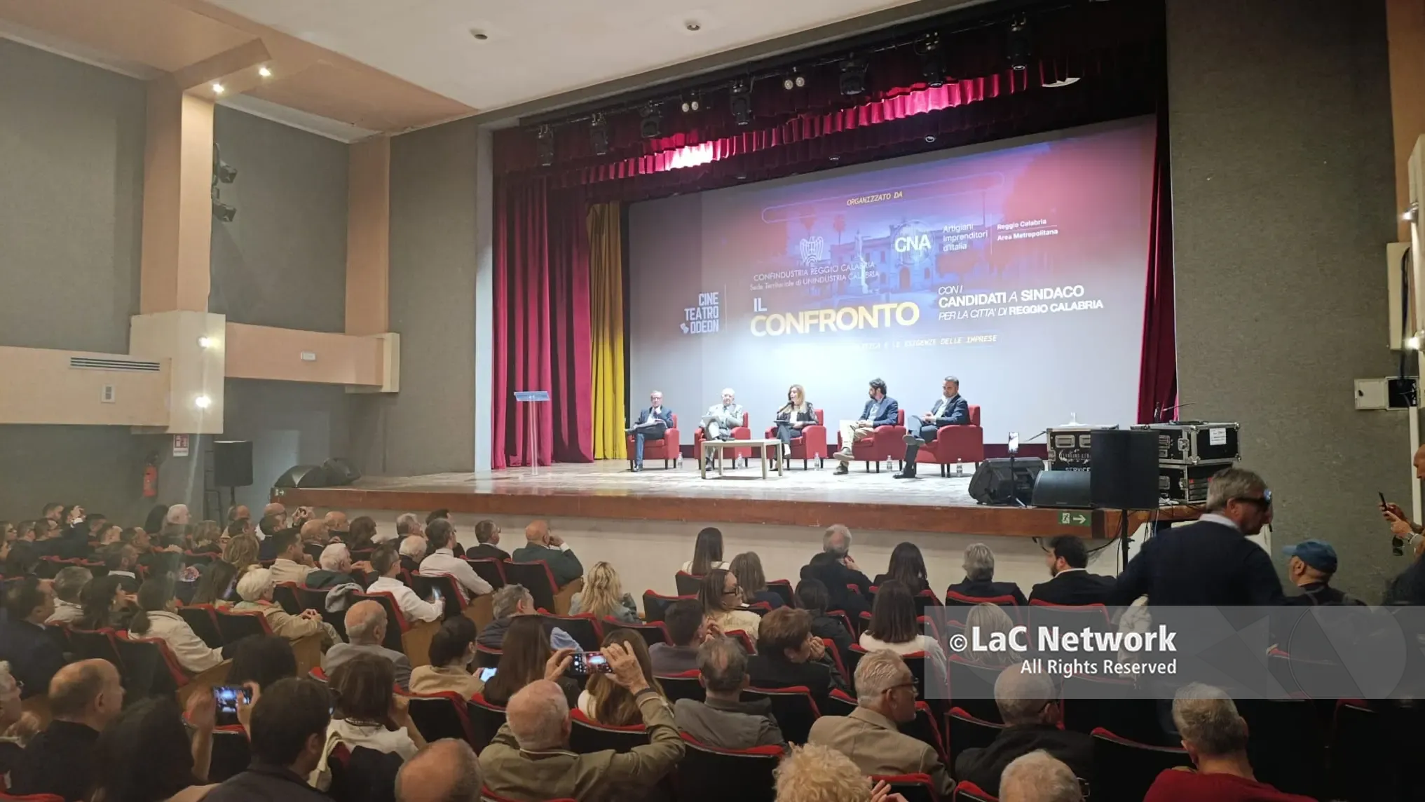 E’ iniziato con un omaggio ad Alberto Sarra, scomparso stanotte, il primo confronto tra candidati sindaco a Reggio Calabria al Cineteatro Odeon, organizzato da Confindustria Reggio Calabria e CNA Area Metropolitana Reggio Calabria.