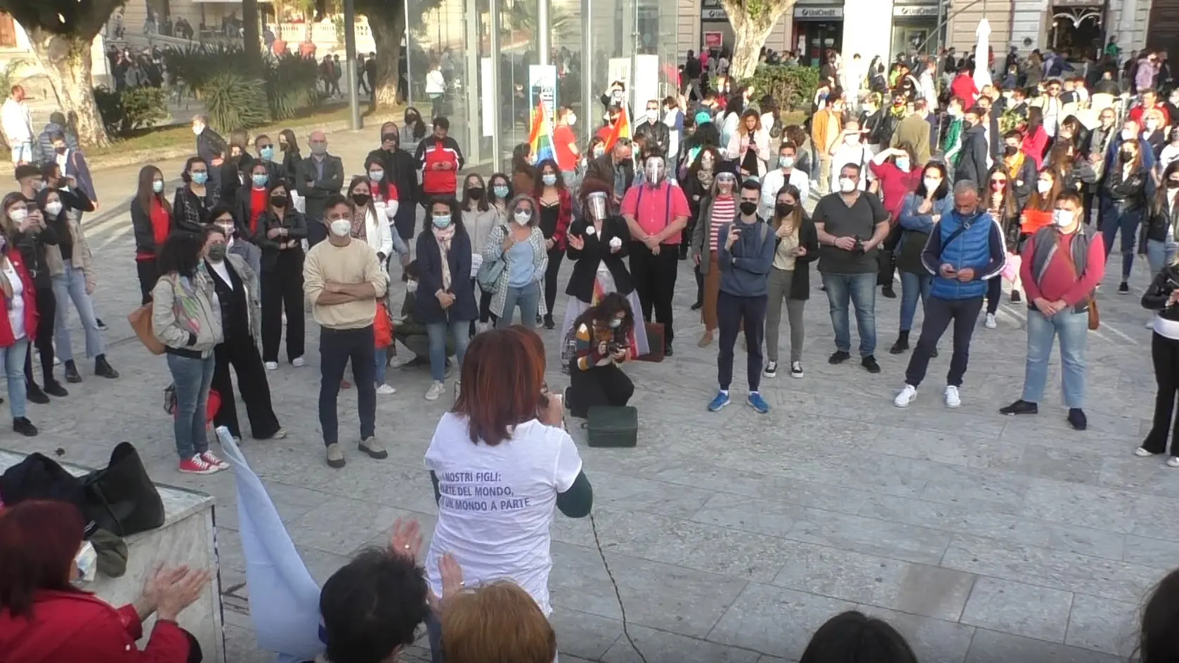 «Siamo in piazza per i diritti e contro le tante, troppe, discriminazioni che ancora gravano sulla vita delle persone», così Michela Calabrò, presidente dell’Arcigay I due mari di Reggio Calabria che, con Agedo, associazione genitori, parenti e amici di persone omosessuali, è scesa in piazza a Reggio per l’unica manifestazione in Calabria in favore dell’approvazione del ddl Zan. Con l’adesione di numerose altre associazioni, la cornice arcobaleno calabrese, tra le 50 coloratesi nello Stivale, è stata dunque quella di Piazza Italia a Reggio.