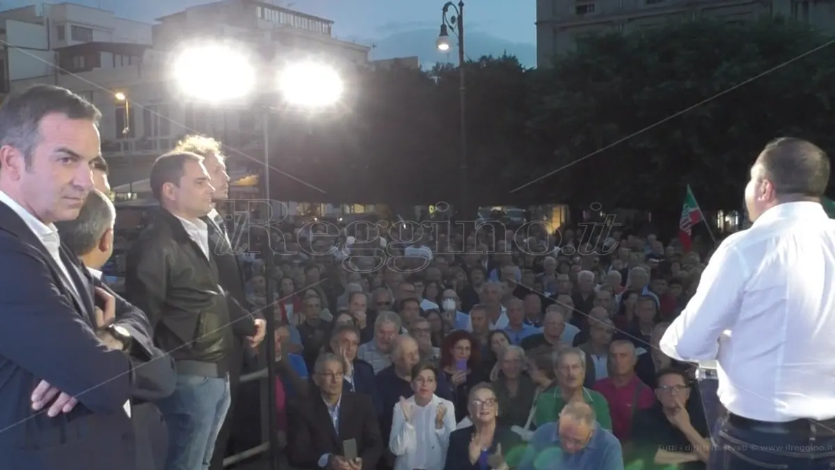 Per dare forza alla sua iniziativa porta con sé, sul palco del comizio, anche il presidente della Regione Roberto Occhiuto, che non si sottrae, anzi ci mette anche il carico nei confronti dell’amministrazione comunale che, nel suo ragionamento, è incapace di capire le opportunità che le sta offrendo la Regione. Occhiuto cerca quindi di fare breccia nel cuore dei reggini, tornando ad auspicare per sè, al termine del suo mandato, la cittadinanza onoraria. Un desiderio che è anche una sfida e un impegno che sa potrebbe ritorcersi contro.