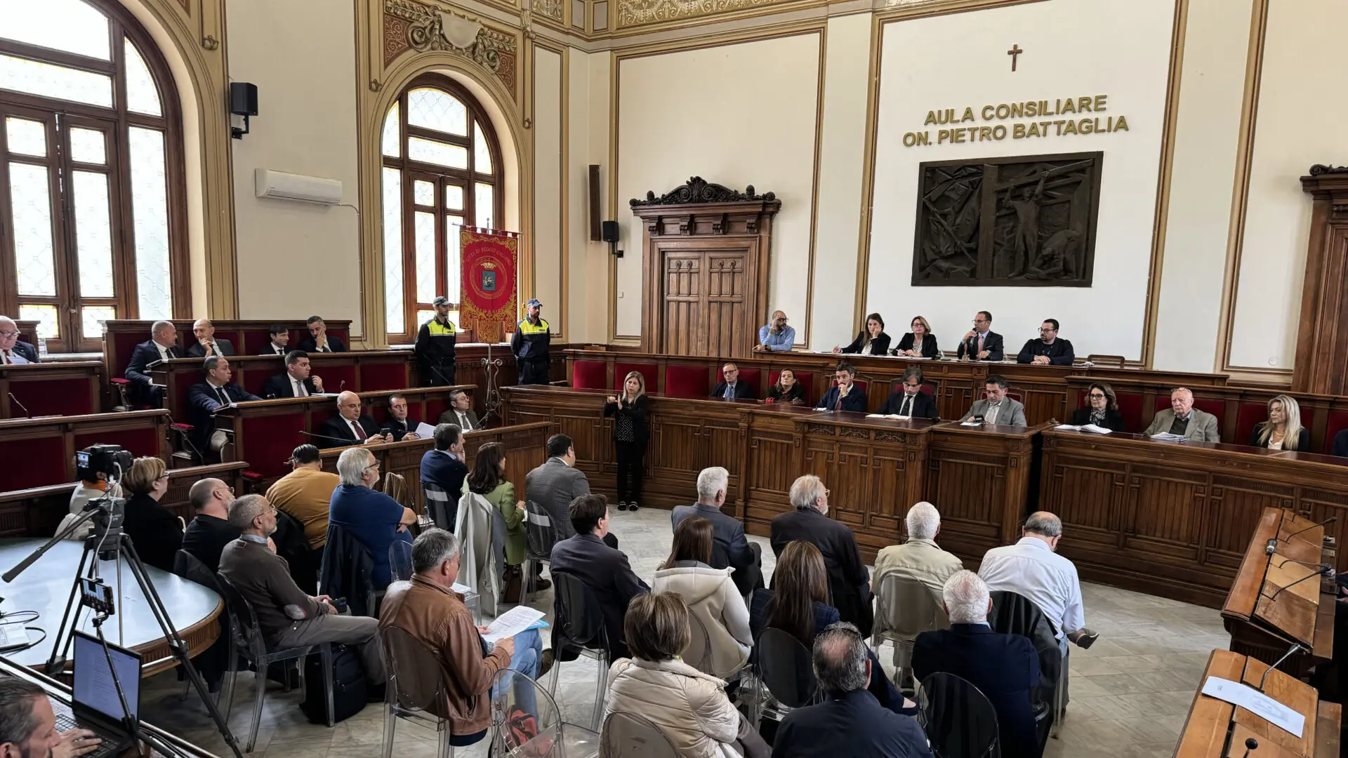 “Difendiamo il diritto alla salute” era l’unico punto all’ordine del giorno della seduta del Consiglio comunale aperto dedicato al tema della Sanità. Ma a palazzo San Giorgio, maggioranza e opposizione continuano a dialogare da distanza siderale, senza trovare la necessaria serenità per una mozione o un ordine del giorno condiviso, tanto che a conclusione di più di sei ore di dibattito dall’aula si esce con un documento che impegna il sindaco Falcomatà ad attivarsi per far fronte alle emergenze del territorio, ma solo a nome della maggioranza, perché le opposizioni decidono di abbandonare l’aula proprio sul finire della seduta tanto che il primo cittadino parlerà di un Consiglio dai due volti.