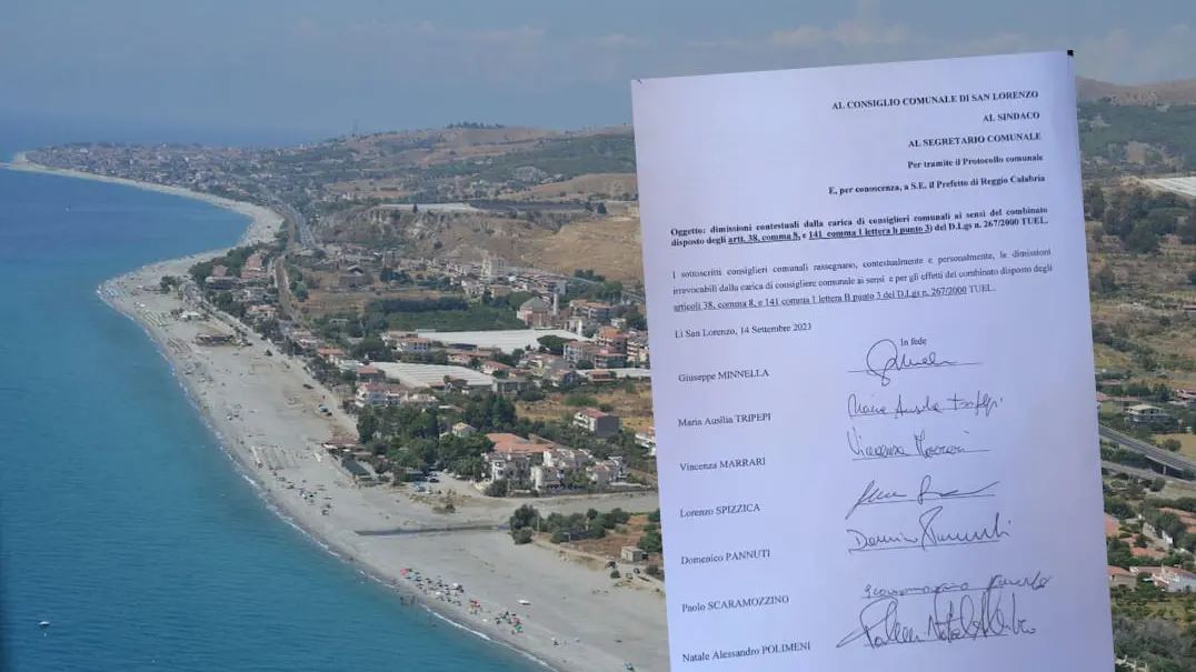 «In mattinata i consiglieri comunali di San Lorenzo Giuseppe Minnella, Vincenza Marrarri, Maria Ausilia Tripepi (gruppo Movimento Sociale di minoranza), Lorenzo Spizzica, Domenico Pannuti, Paolo Scaramozzino (gruppo di maggioranza) ed il vice sindaco Natale Alessandro Polimeni, hanno presentato contemporaneamente all’ufficio protocollo del comune le proprie dimissioni dall’incarico elettivo ricoperto dal giugno 2022».