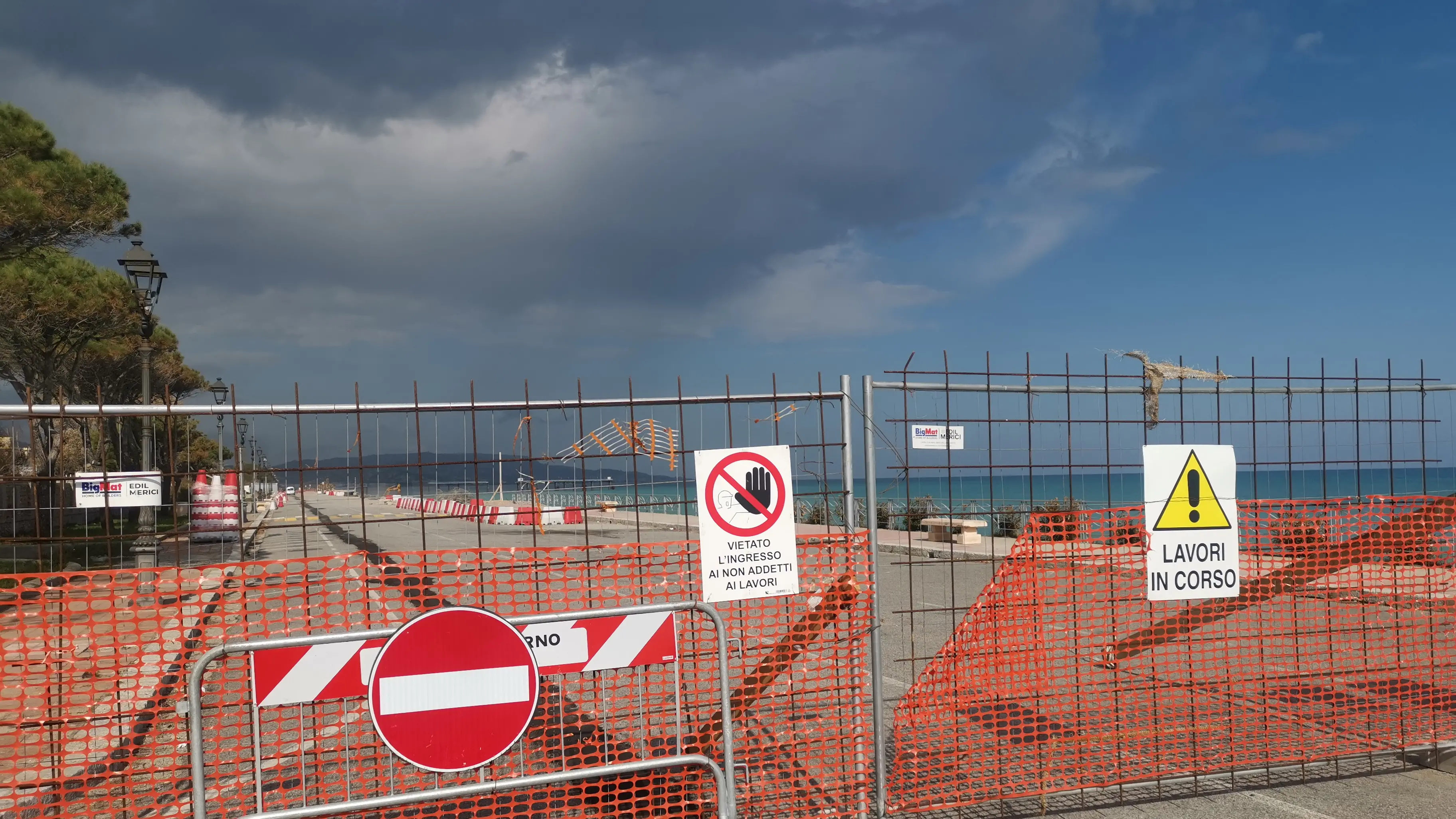Sono due le aree di cantiere presenti e, in quanto tali, inaccessibili a chiunque, ad esclusione degli addetti ai lavori: una è ubicata nella zona Sud del lungomare tra il passaggio a livello del rione Sbarre e il giardino «a labirinto» all’altezza di piazza Portosalvo; l’altra nella zona Nord dal passaggio a livello di via Genova al sottopassaggio all’altezza di via del Progresso.