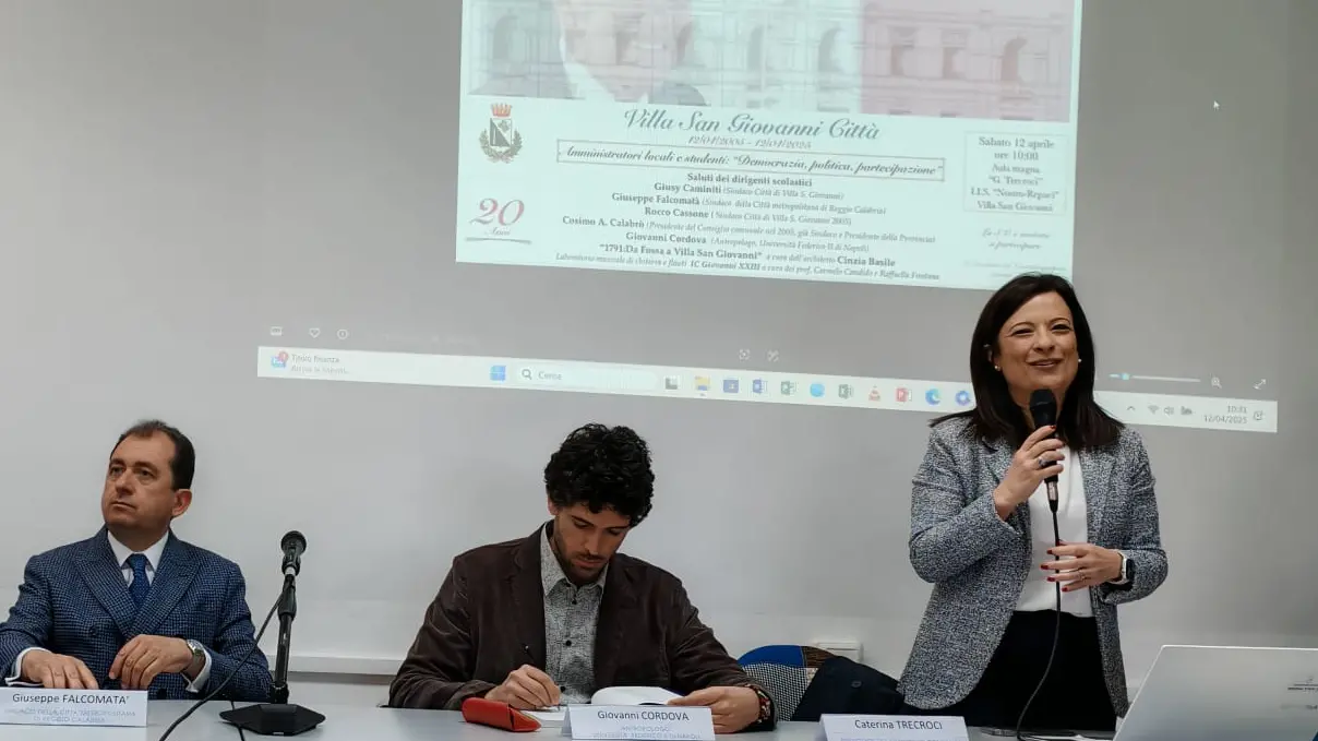 Il benvenuto è stato della presidente del Consiglio comunale Caterina Trecroci, che ha sottolineato come l’evento si inserisca in un percorso avviato con le istituzioni scolastiche già con la Festa dell’Autonomia, teso a far riappropriare cittadini e studenti della storia della Città di Villa San Giovanni. A seguire il saluto della professoressa Scopelliti che a nome del liceo ospitante ha espresso un caloroso augurio alla Città: di piena consapevolezza dell’ impegno e della responsabilità assunta dall’essere “polis”, comunità orientata sui bisogni del cittadino.