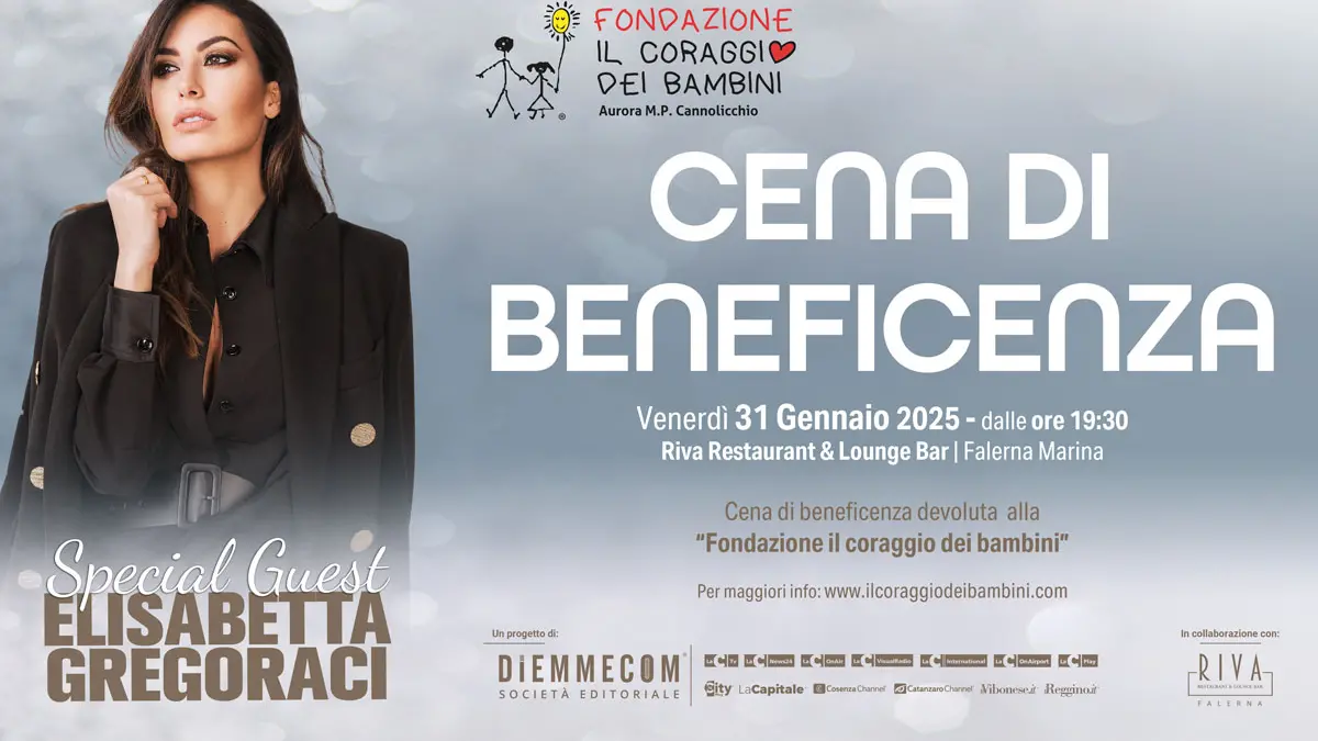 Venerdì 31 gennaio dalle ore 19:30 si terrà al Riva Restaurant & Lounge Bar di Falerna Marina, la Cena di Beneficenza devoluta alla Fondazione “Il Coraggio dei Bambini”, un ente che da anni lavora instancabilmente per sostenere la ricerca contro i tumori cerebrali solidi infantili nell’ambito della Neuro-Oncologia Pediatrica.