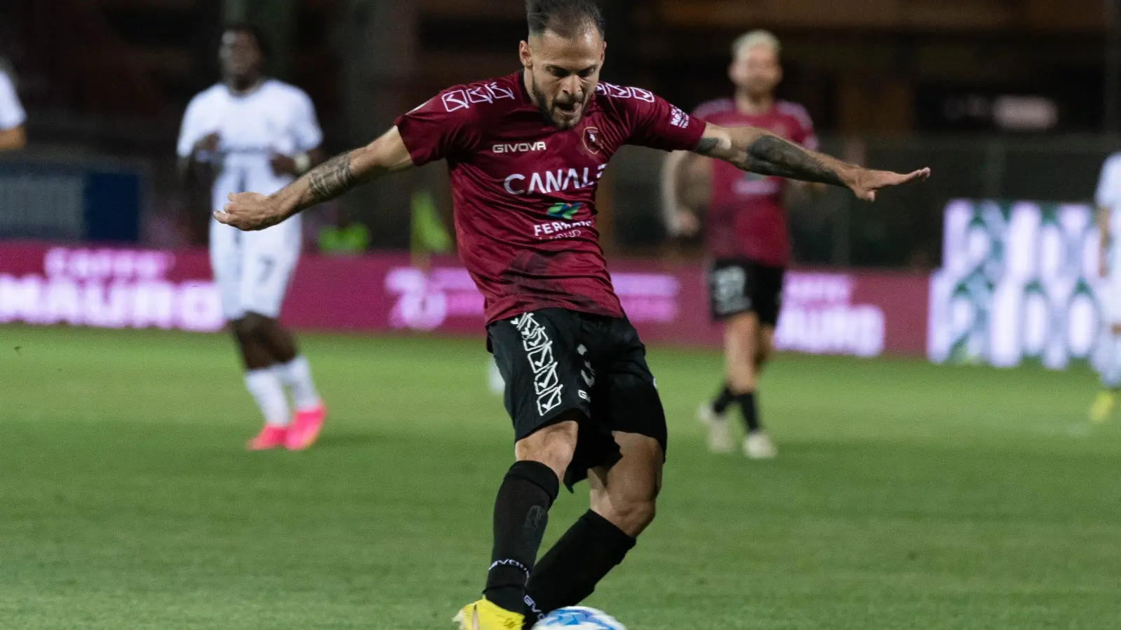 Dopo un primo spicchio decisamente sopra le righe, l’Ascoli cerca di prendere le misure agli uomini di Inzaghi. La punizione di Forte e il successivo tentativo di Pedro Mendes sono i primi due squilli dei marchigiani: entrambi, però, non inquadrano la porta. Dalla panchina amaranto, tuttavia, si alza subito Canotto. Rivas non sta benissimo e, infatti, abbandona la contesa al giro di boa del primo tempo: altra tegola per l’allenatore dello Stretto.