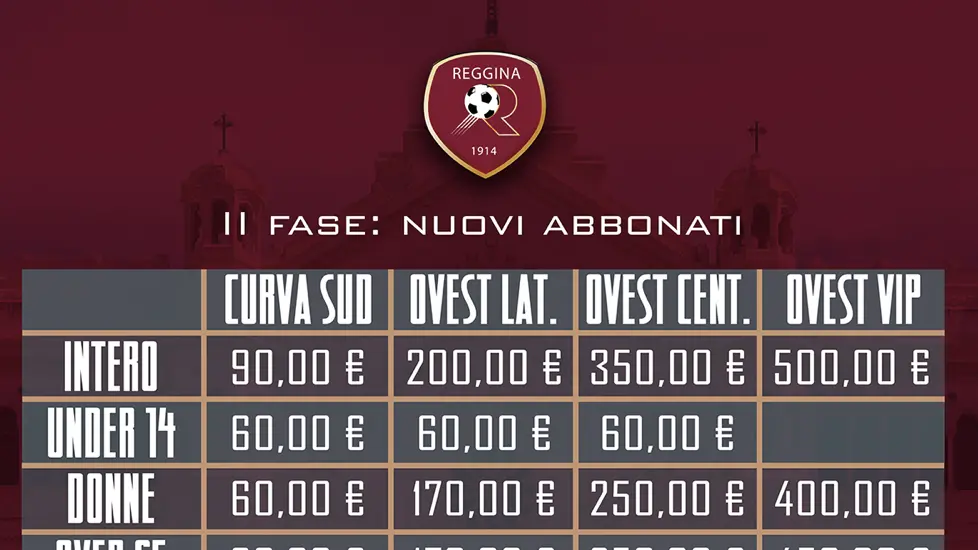 Al via la seconda fase con la sottoscrizione libera. Sarà possibile sottoscrivere il proprio abbonamento presso il Gabbiotto del Centro Sportivo Sant’Agata da giorno 20/08 al 27/08 (escluso domenica 25/08) dalle ore 10.00 alle ore 12.00 e dalle ore 17.00 alle ore 20.00, online su Vivaticket e presso BCENTERS (via Via Sbarre Centrali 260/b Reggio Calabria – Orario continuato 9.00/19.30).
