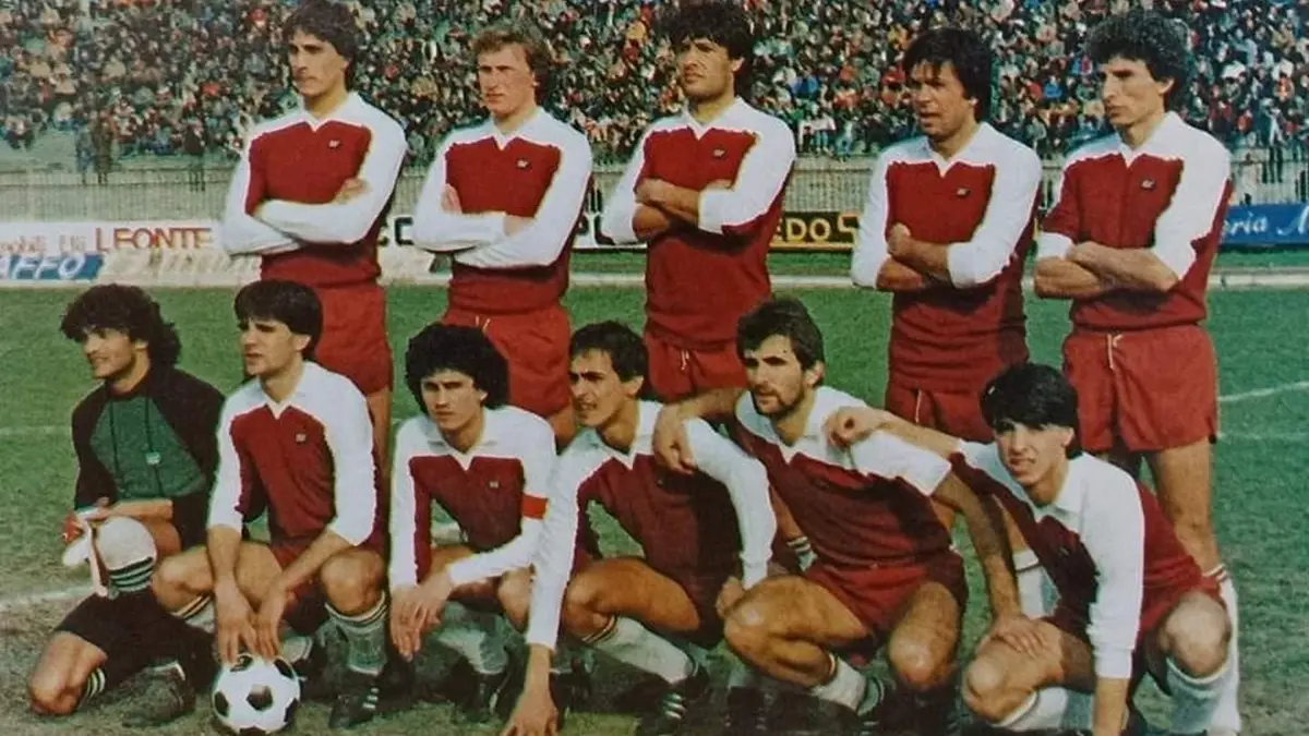 Foto 1. una formazione di quel miracolo sportivo: Crucitti, Bellaspica, Perfetto, Amato e Cracchiolo; Tarocco, Figliomeni, Spinella, Raggi, Costaggiu e Macrì