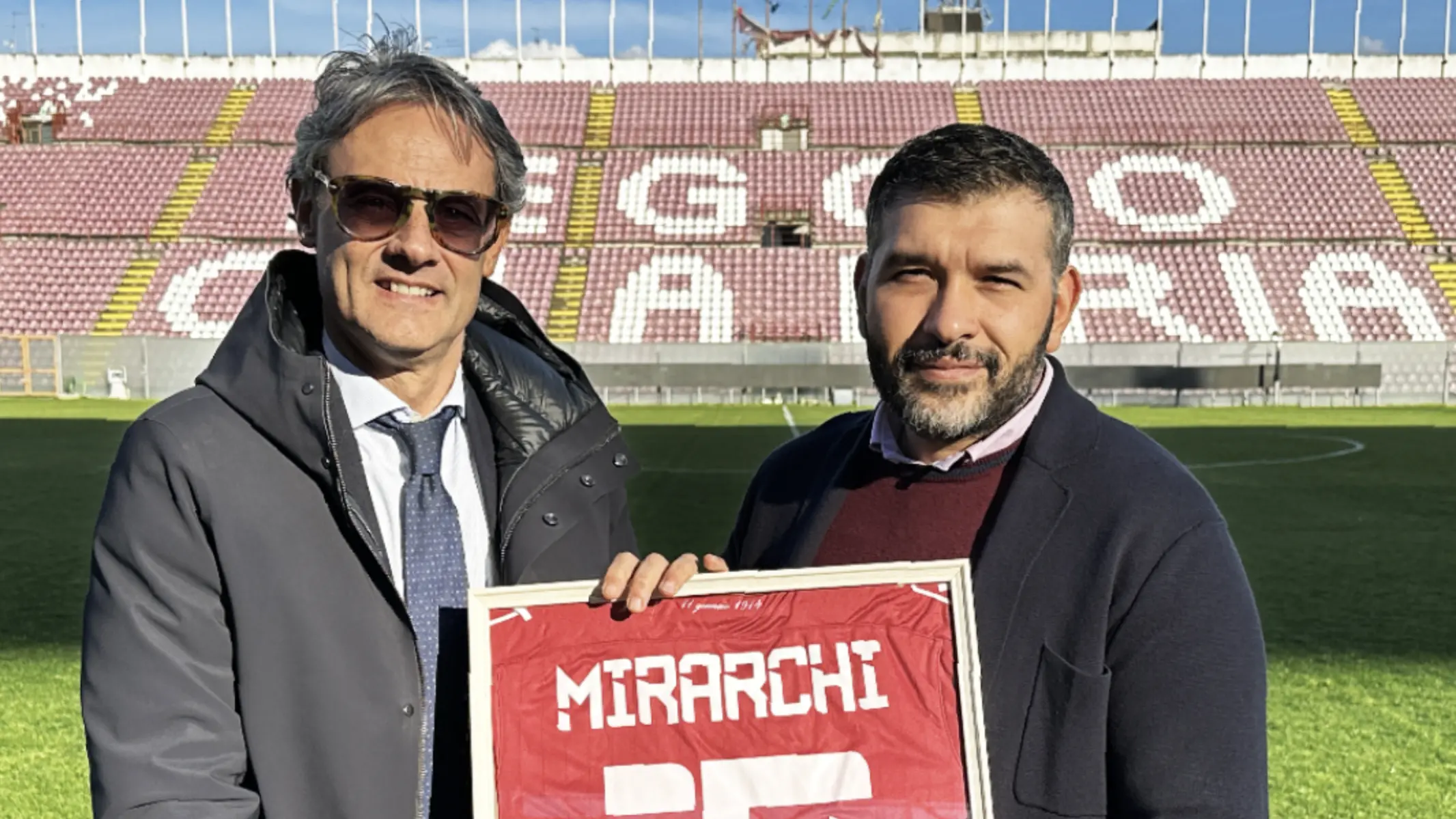 Il primo dirigente amaranto Virgilio Minniti ha omaggiato il presidente del CR Calabria Saverio Mirarchi con una maglia ufficiale del Club consegnata durante l’allenamento congiunto svoltosi allo Stadio “Oreste Granillo” tra la juniores amaranto e la rappresentativa regionale under 17.