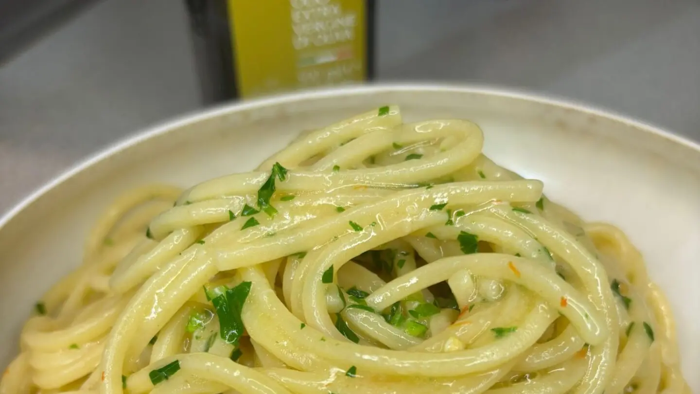 Una volta che la pasta sarà cotta al dente, potete trasferirla direttamente in padella. Mantecate qualche istante per amalgamare e creare una deliziosa cremina di solo acqua, olio, aglio e peperoncino.