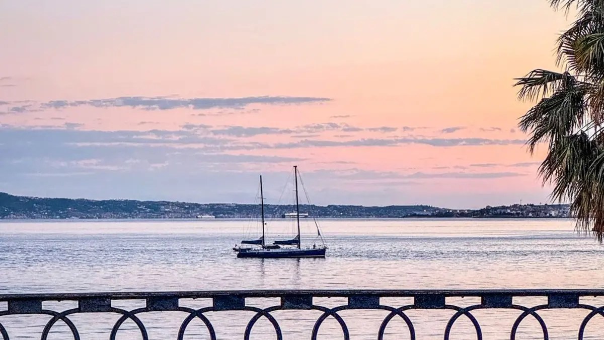 di Lorenzo Vazzana – È mattina presto sul lungomare Falcomatà, il “chilometro più bello d’Italia”. Il sole inizia a sorgere, tingendo il cielo di sfumature delicate tra il rosa, l’oro e l’azzurro. Davanti alla città ancora silenziosa, una barca a vela riposa sull’acqua immobile, alla fonda, come se ascoltasse il respiro lento del giorno che nasce. È una scena che racchiude eleganza, pace e armonia: il mare diventa specchio, la luce una carezza.
