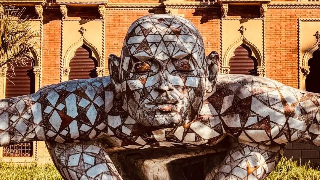 C’è un punto, sul lungomare, in cui il tempo sembra rallentare, come se il mare stesso trattenesse il respiro per contemplare la bellezza che lo circonda. In primo piano, “Costellazione” di Rabarama si staglia come un enigma inciso nella materia, una figura che racconta il mistero dell’essere umano attraverso trame che ricordano universi lontani. Le sue superfici dialogano con la luce del tramonto, accendendosi di riflessi che mutano a ogni sguardo.