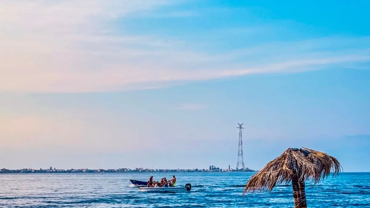 Di Lorenzo Vazzana – In un angolo incantato del mare di Cannitello, una ragazza si ferma, a contemplare lo Stretto. Due barche lo attraversano placide, tracciando linee invisibili tra Calabria e Sicilia. Accanto a lei, una palma emerge sorprendentemente dall’acqua, quasi un simbolo onirico che unisce terra e mare. Di fronte, il maestoso pilone di Punta Faro veglia sulla scena, testimone silenzioso di passaggi, rotte e storie.