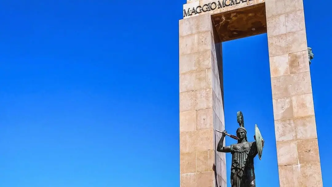 di Lorenzo Vazzana – In una mattina limpida e serena, la dea Athena si staglia fiera sull’Arena dello Stretto, custode silenziosa del mare e della storia di Reggio Calabria. Alle sue spalle, come sospinta da un soffio divino, una barca a vela attraversa il tratto di mare che separa la Calabria dalla Sicilia, scivolando tra riflessi d’argento e azzurri profondi.