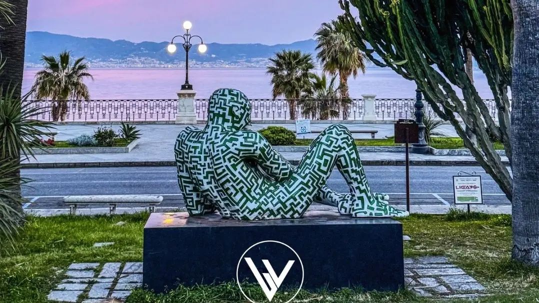 di Lorenzo Vazzana – La statua, realizzata in bronzo e dipinta con sfumature di bianco e verde, rappresenta il “labirinto dell’IO” che ciascuno di noi porta dentro di sé.