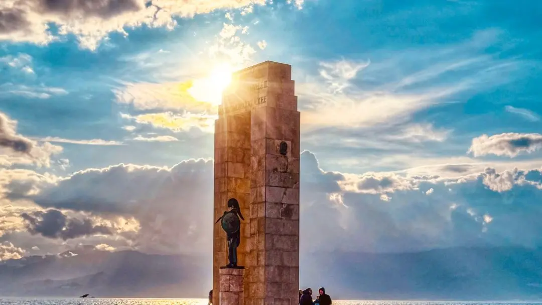 Una fenditura nel cielo. Un lampo di sole che non scalda, ma illumina. Non è un miracolo, non è spettacolo: è un richiamo. La luce scende dritta. Taglia l’ombra, divide il cielo. Si posa su quella pietra, su quella statua, su quella punta di mare.