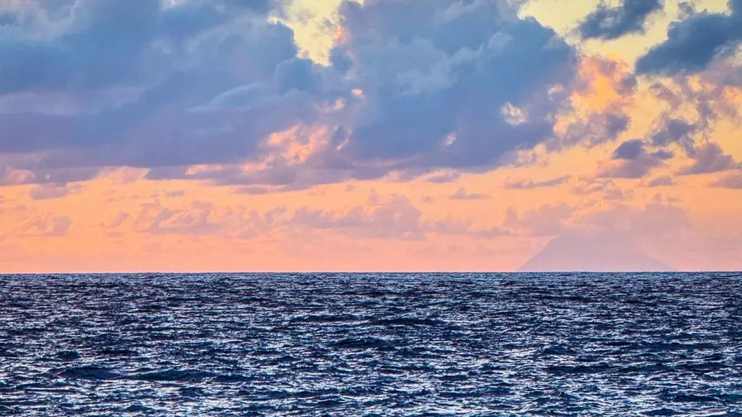 di Lorenzo Vazzana – È un momento sospeso, silenzioso. Una ragazza siede sulla sabbia scura di Scilla, il castello Ruffo alle spalle come una corona antica. Davanti a lei, il mare calmo e profondo riflette le tinte delicate di un tramonto rosa. All’orizzonte, quasi timido tra le nuvole, appare lo Stromboli, quel vulcano solitario che da secoli racconta storie di fuoco e di mare. Non serve parlare.