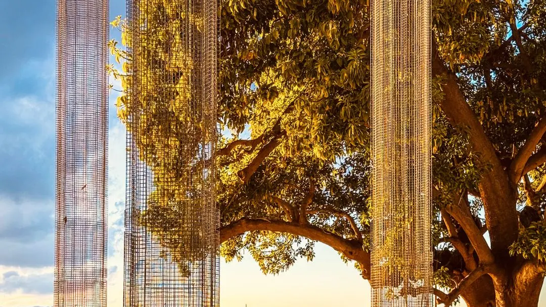 di Lorenzo Vazzana – Quando l’arte incontra il paesaggio, nasce la poesia. A Reggio Calabria, tra le trasparenti colonne metalliche dell’installazione “Opera” di Tresoldi, una barca a vela si lascia cullare dolcemente dal mare. È ormeggiata davanti al Lungomare Falcomatà, mentre il sole al tramonto trasforma tutto in oro liquido.